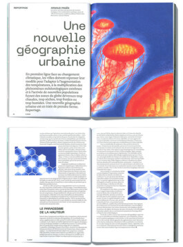 ENG/ Illustration for an article written by Arnaud Pagès for the first issue of the futuristic magazine Flaash. This article addresses the vast subject of climate change and its impact on the shape of tomorrow's cities.